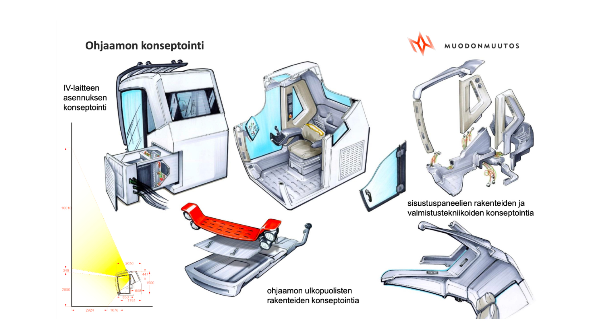 Ohjaamon konseptoinnissa tehtiin tutkielmia muun muassa IV-laitteen asennuksesta, sisustuspaneelien rakenteista ja valmistustekniikoista sekä ohjaamon ulkopuolisista rakenteista.