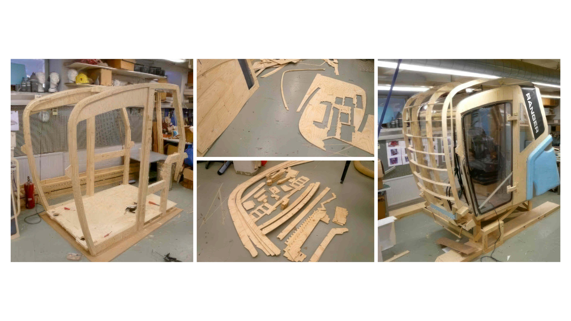 Ohjaamon hahmomallin runko työstettiin vesileikatuista vaneriosista ja lasitukset polykarbonaattilevystä.
