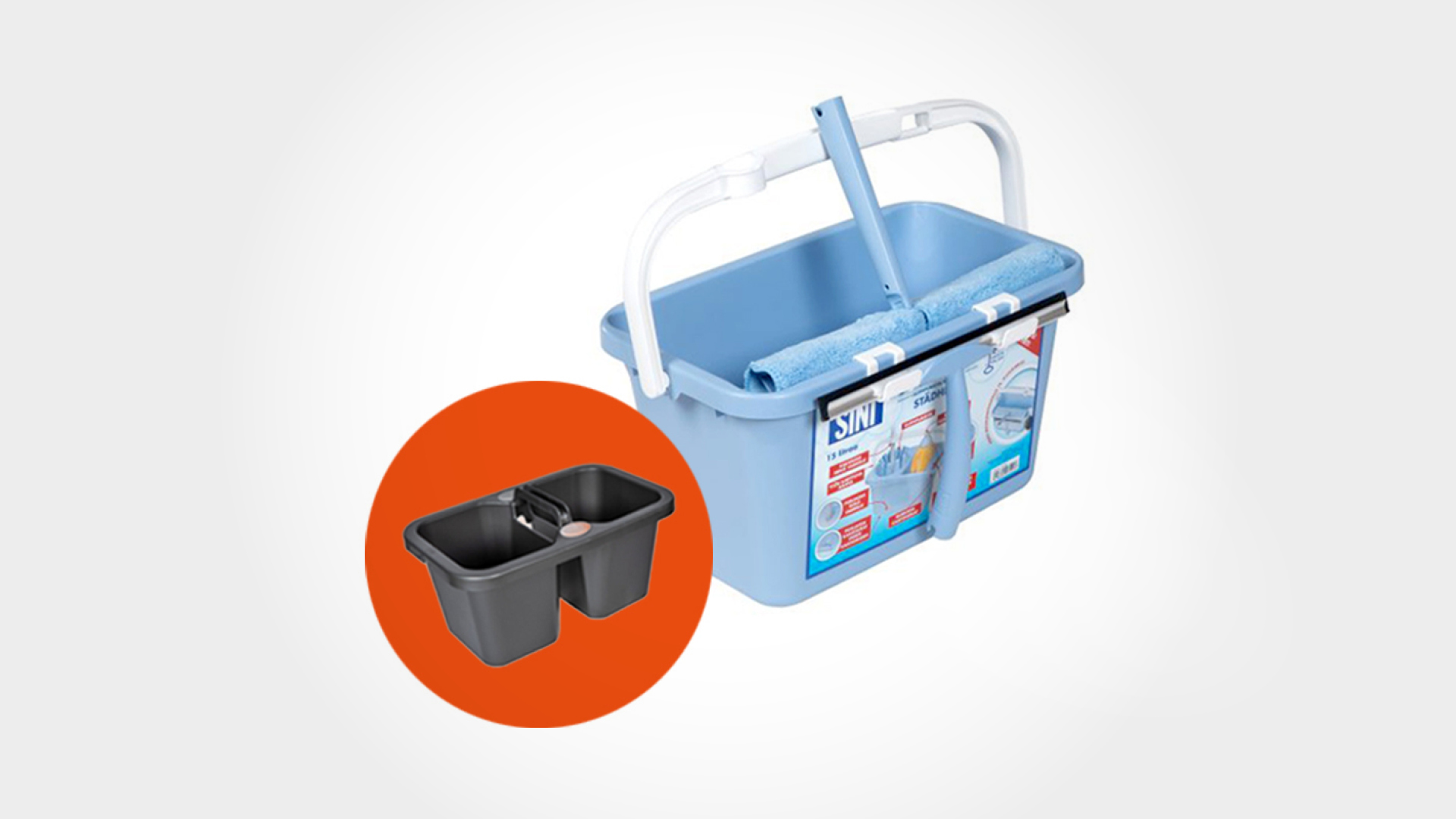 Pohdinnat jalostuivat Sinisangoksi, johon saa integroitua telineet ikkunanpesimelle ja -kuivaajalle tai kuppipuristimen mopin kuivaamista varten. Sangon pohjassa on kätevät kantourat ja nurkissa näppärät kaatonokat. Sisällä olevasta mitta-asteikosta näkee helposti veden määrän. Pohjan tassujen ansiosta sanko ei keiku epätasaisella alustalla, eikä lattiaan jää vesirinkuloita sangon jäljiltä. Kun kahvan nostaa pystyyn, siinä on teline siivousvarrelle.
