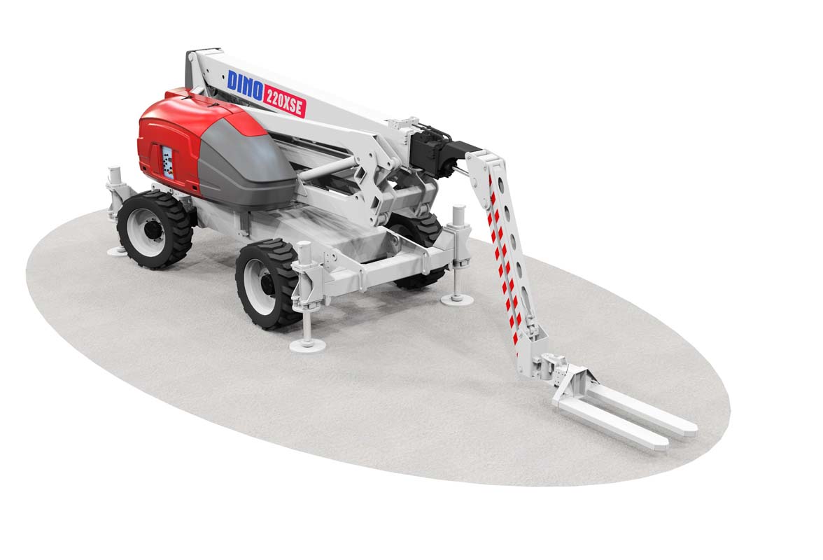 220XSE on Dinoliftin maastokelpoinen, kolmen hengen korilla ja vastapainolla varustettu kuukulkija.